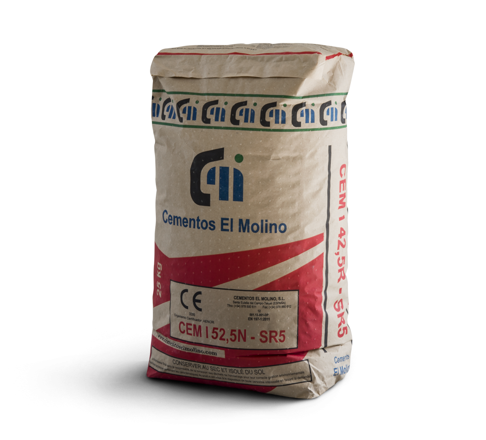 Type I Portland cement with a resistance of 52.5 MPa at 28 days and resistant to sulfates. Its performance makes it recommended for concrete in aggressive environments, in contact with soil or water that contains sulfates or that must be located in marine environments.